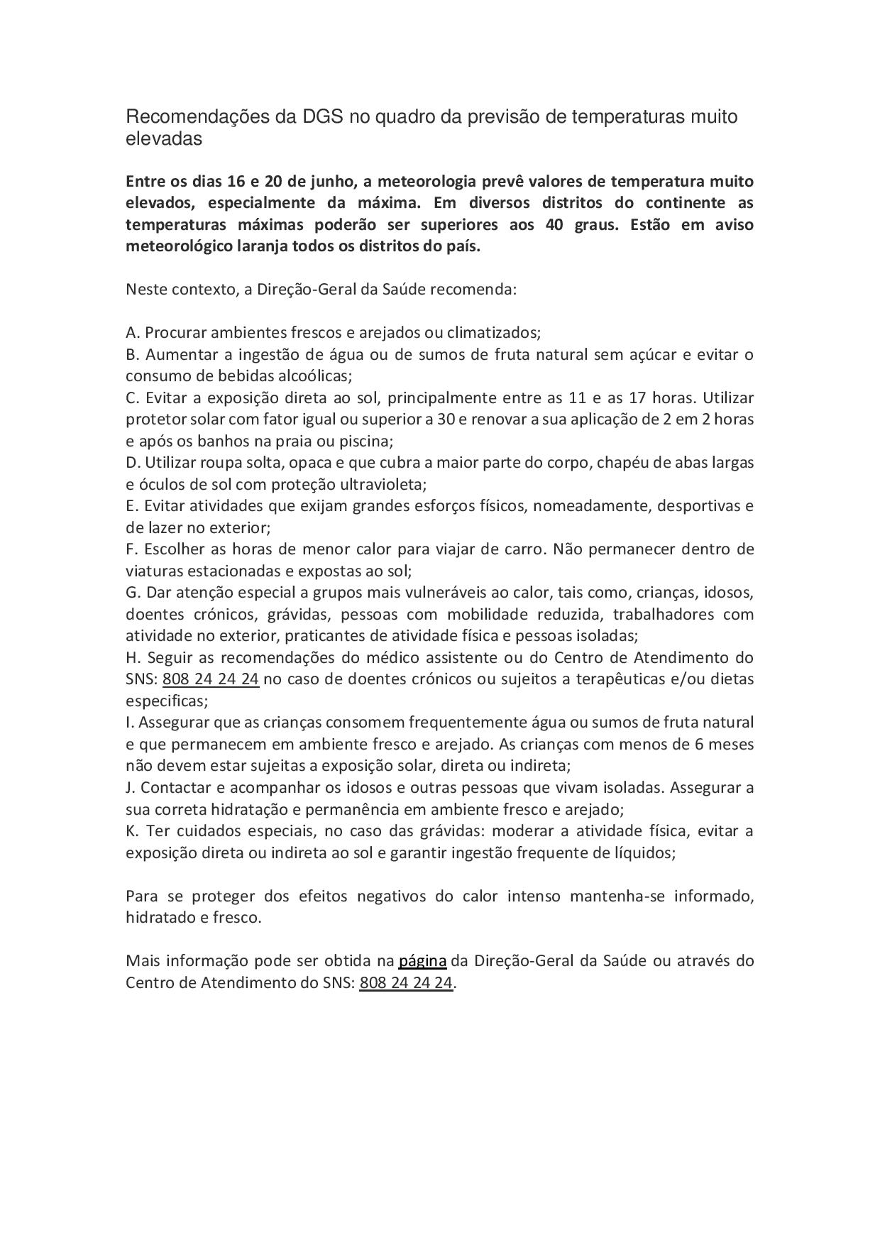 Recomendações da DGS no quadro da previsão de temperaturas muito elevadasadminJunho 17, 2017DESTAQUES