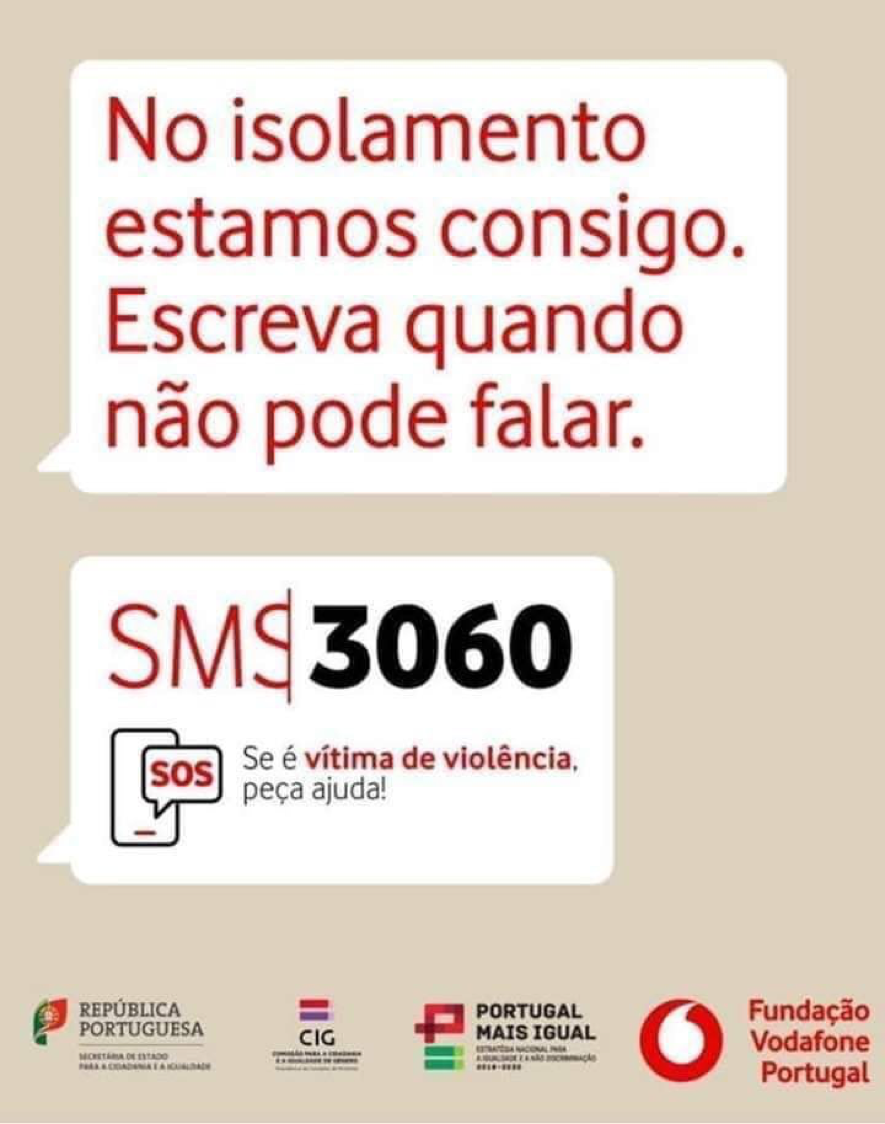 Em coordenação com o Governo, a Fundação Vodafone Portugal criou uma linha de apoio com o número 3060, que permite o envio de mensagens de texto rápidas (SMS) pelas vítimas que queiram pedir ajuda. É gratuito e garante a confidencialidade, uma vez que não fica qualquer registo no detalhe mensal das faturas.